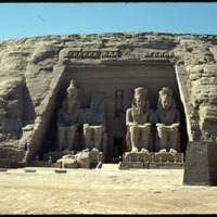 View of the Great Temple of Ramesses II at Abu Simbel and hill