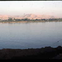 الأقصر، منظر يطل على الجهه الغربية عبر نهر النيل من الفندق وقت شروق الشمس