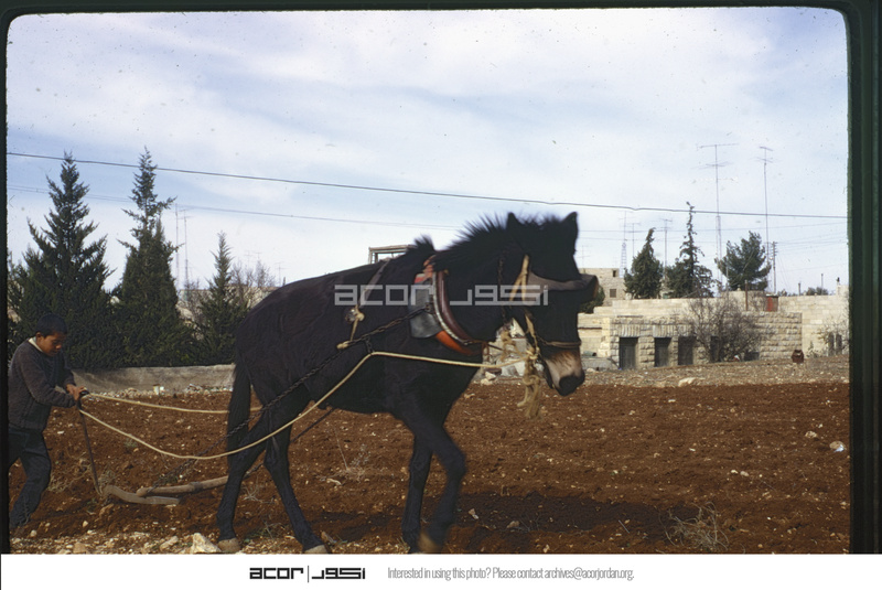 Palestinian boys plowing