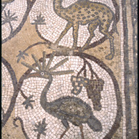 البترا، أرضية فسيفسائية في كنيسة البترا، تمثل الجمل وطائر