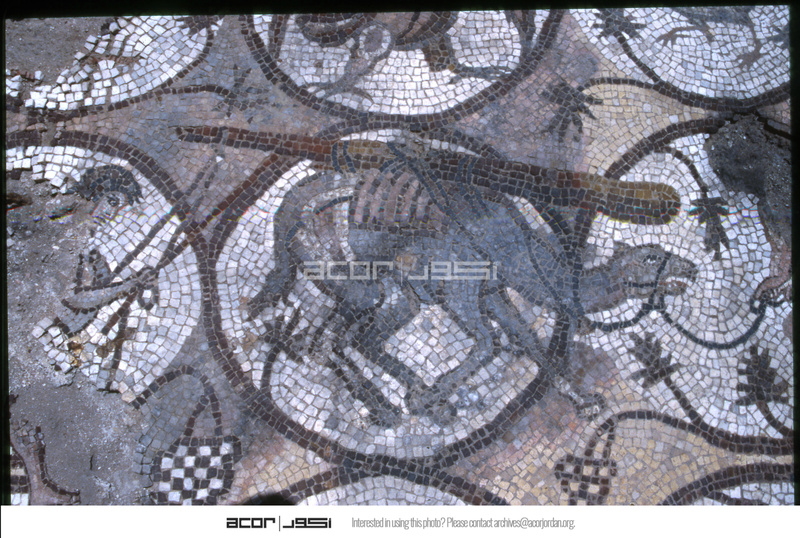 البترا، أرضية فسيفسائية من الرواق الشمالي من كنيسة البترا، تمثل جمل