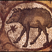 البترا، أرضية فسيفسائية في كنيسة البترا، تمثل خنزير