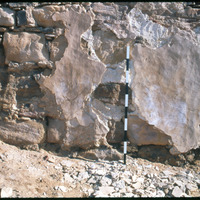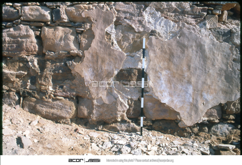 مشروع أعمال التنقيب الأثري في موقع الحميمة - الكنيسة السفلية - بقايا جص على الجدار