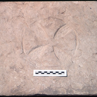 مشروع أعمال التنقيب الأثري في موقع الحميمة - الكنيسة السفلية - نقش حجري بارز على شكل صليب