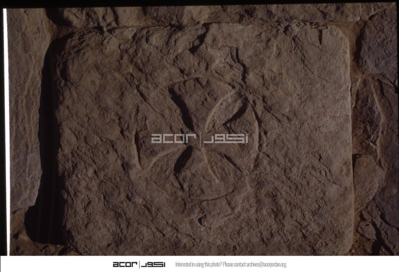 مشروع أعمال التنقيب الأثري في موقع الحميمة - الكنيسة السفلية - نقش حجري بارز على شكل صليب