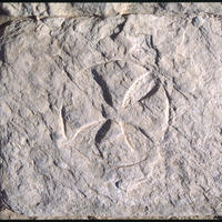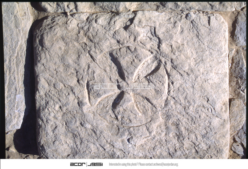 مشروع أعمال التنقيب الأثري في موقع الحميمة - الكنيسة السفلية - نقش حجري بارز على شكل صليب