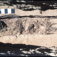 مشروع أعمال التنقيب الأثري في موقع الحميمة - الكنيسة السفلية ، قبر فيه بقايا هيكل عظمي