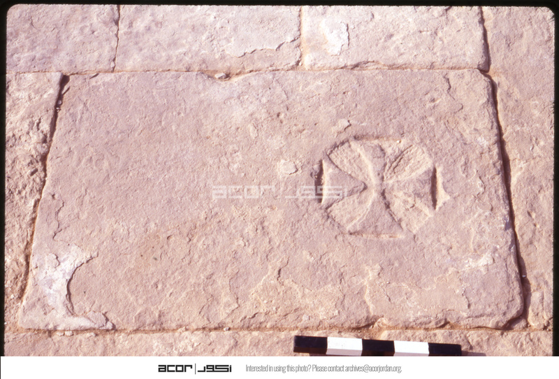 مشروع أعمال التنقيب الأثري في موقع الحميمة - الكنيسة السفلية - نقش بارز على شكر صليب