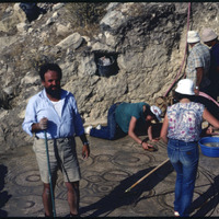 Cleaning mosaic floor at Mount Nebo