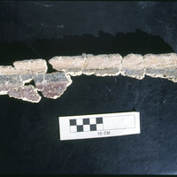 حفريات الكنيسة السفلية في القويسمة - قطع مكسرة من لوح من الحجر الجيري