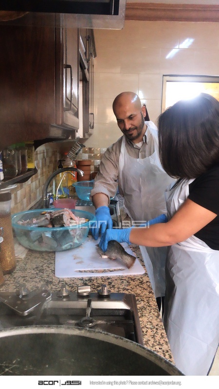 الأردن. العقبة، أعضاء فريق مشروع استدامة الإرث الثقافي بمشاركة المجتمعات المحلية خلال المشاركة في مجموعة من التجارب التي تقدمها عقباوي
