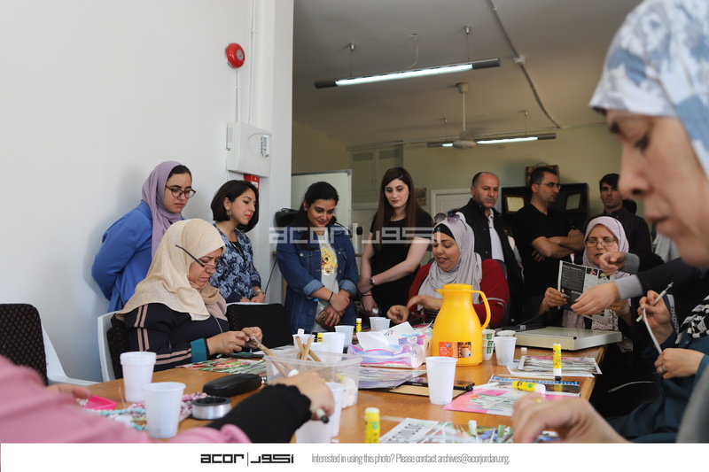الأردن. العقبة، أعضاء فريق مشروع استدامة الإرث الثقافي بمشاركة المجتمعات المحلية خلال المشاركة في مجموعة من التجارب التي تقدمها عقباوي