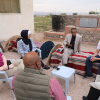 الأردن. غور الصافي، فريق المركز الأمريكي للأبحاث وأعضاء من فريق مشروع استدامة الإرث الثقافي بمشاركة المجتمعات المحلية والوكالة الأمريكية للتنمية الدولية في زيارتهم إلى مطبخ الصافي لتجربة مجموعة من تجارب السياحة الزراعية
