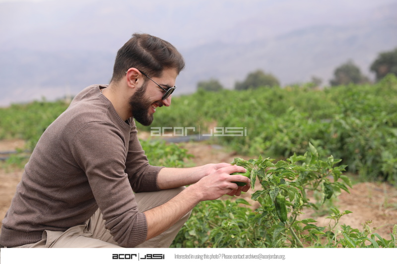 الأردن. غور الصافي، فريق المركز الأمريكي للأبحاث وأعضاء من فريق مشروع استدامة الإرث الثقافي بمشاركة المجتمعات المحلية والوكالة الأمريكية للتنمية الدولية في زيارتهم إلى مطبخ الصافي لتجربة مجموعة من تجارب السياحة الزراعية