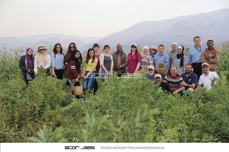الأردن. غور الصافي، فريق المركز الأمريكي للأبحاث وأعضاء من فريق مشروع استدامة الإرث الثقافي بمشاركة المجتمعات المحلية والوكالة الأمريكية للتنمية الدولية في زيارتهم إلى مطبخ الصافي لتجربة مجموعة من تجارب السياحة الزراعية