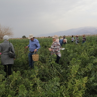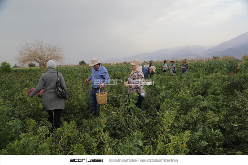 الأردن. غور الصافي، فريق المركز الأمريكي للأبحاث وأعضاء من فريق مشروع استدامة الإرث الثقافي بمشاركة المجتمعات المحلية والوكالة الأمريكية للتنمية الدولية في زيارتهم إلى مطبخ الصافي لتجربة مجموعة من تجارب السياحة الزراعية