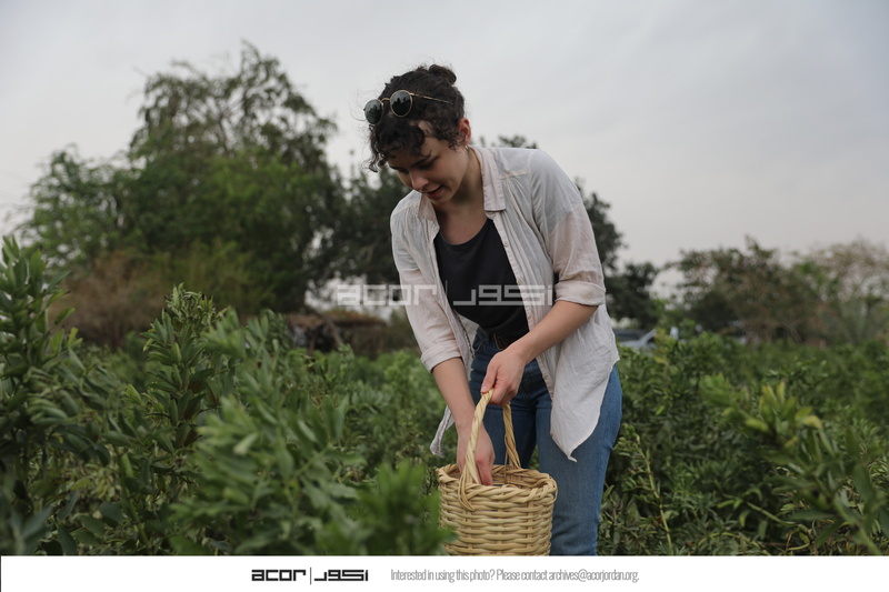 الأردن. غور الصافي، فريق المركز الأمريكي للأبحاث وأعضاء من فريق مشروع استدامة الإرث الثقافي بمشاركة المجتمعات المحلية والوكالة الأمريكية للتنمية الدولية في زيارتهم إلى مطبخ الصافي لتجربة مجموعة من تجارب السياحة الزراعية