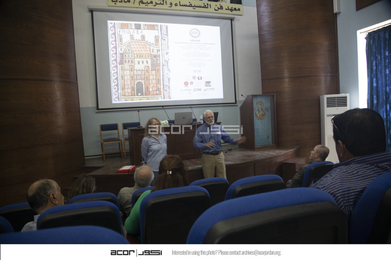 الأردن. مادبا، اجتماع مشروع متحف مادبا الأثري الإقليمي الجديد مع أبناء المجتمع المحلي، يظهر في الصورة دوغلاس كلارك وسوزران ريتشرد