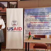 الأردن. وادي رم، هنادي الطاهر خلال حفل توقيع مذكرة تفاهم بين المركز الأمريكي للأبحاث وسلطة منطقة العقبة الاقتصادية الخاصة