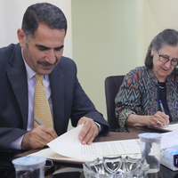 الأردن. عمان، جانب من توقيع مذكرة تفاهم بين دائرة الآثار العامة والمركز الأمريكي للأبحاث من خلال مشروع استدامة الإرث الثقافي بمشاركة المجتمعات المحلية