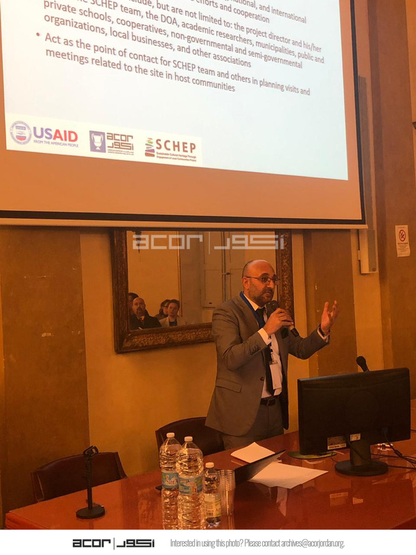 إيطاليا. فلورانس، جهاد هارون يقدم محاضرة ضمن ورشة عمل مشروع استدامة الإرث الثقافي بمشاركة المجتمعات المحلية خلال مؤتمر تاريخ وآثار الأردن الرابع عشر في جامعة فلورانس