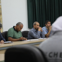 غاري ريفلسون يلقي محاضرة إلى موظفي دائرة الآثار العامة في تاريخ 5 تشرين الثاني 2019 قبل البدء بأعمال الحفريات الأثرية والبرنامج التدريبي التطبيقي في موقع عين غزال والذي يعود إلى العصر الحجري الحديث.
