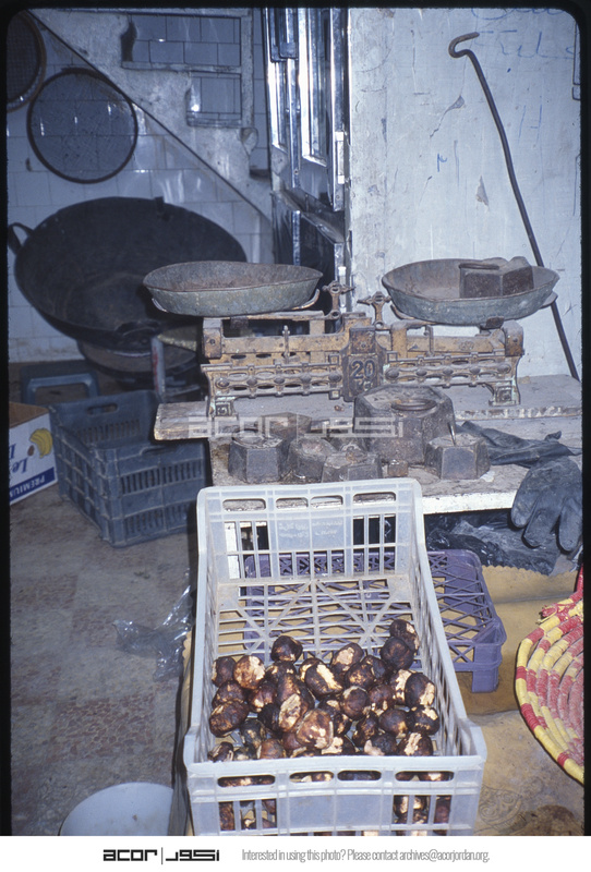 محل يبيع نبات الكمأ باستخدام الميزان والأوزان