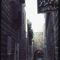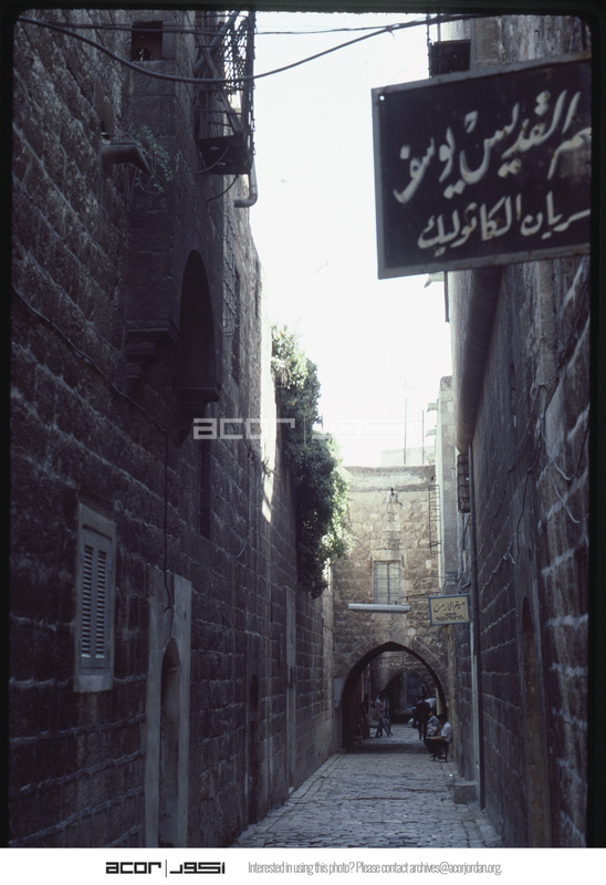 زقاق في حي الجديدة تظهر فيه لافتة ميتم الأرمن وميتم القديس يوسف للسريان الكاثوليك