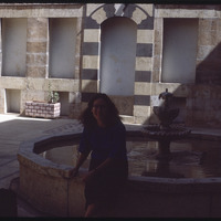 بربرا أ. بورتر تجلس على حافة نافورة الماء "البحرة" في بيت أجقباش