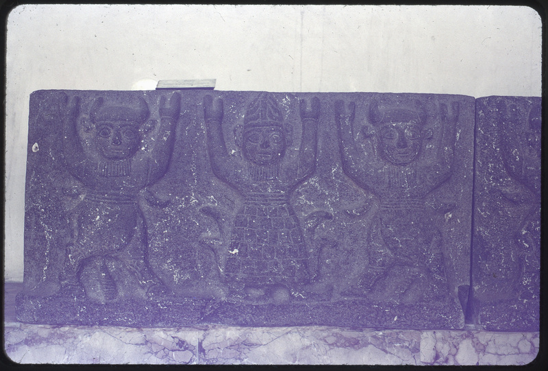 نقش بارز يصوّر إله الجبل ومرافقيه من عين دارة في متحف حلب الوطني