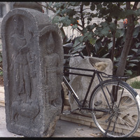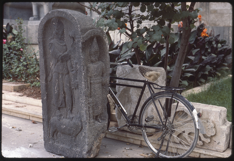 نصب بارز بجانب دراجة في ساحة متحف حلب
