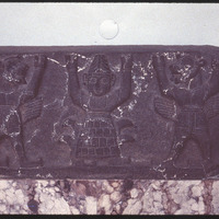 نقش بازلتي يصوّر إله الجبل الحثّي ومخلوقات هجينة من عين دارة في متحف حلب الوطني