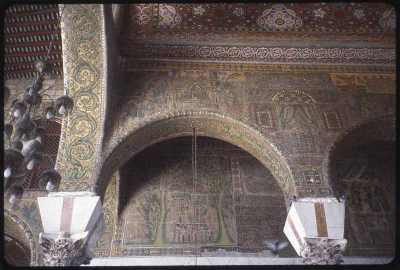 تفاصيل الفسيفساء والتيجان داخل الجامع الأموي