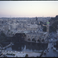 منظر عام لمدينة حماة تظهر فيه النواعير