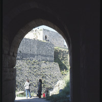 قلعة الحصن كما تظهر من أحد الممرات