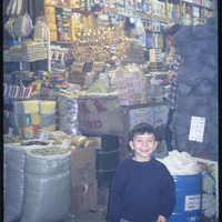 طفل أمام محل في أحد أسواق حلب القديمة
