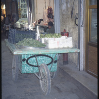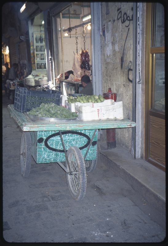 عربة متنقلة تبيع كوسا ولوز في أحد اسواق حلب القديمة