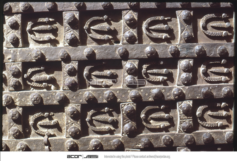 تفاصيل تصميم حدوات الخيول على باب البرج الصغير لمدخل قلعة حلب