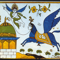 رسم فني يصوّر براق يقوده ملاك