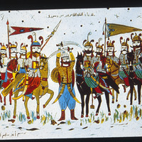 رسم فني بعنوان ملاقاة الملك ظاهر بيبرس ومعروف