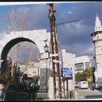 قوس النصر الروماني والمئذنة العمرية