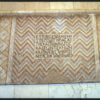 فسيفساء بأشكال هندسية ونقوش يونانية في متحف دمشق الوطني