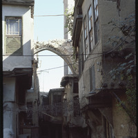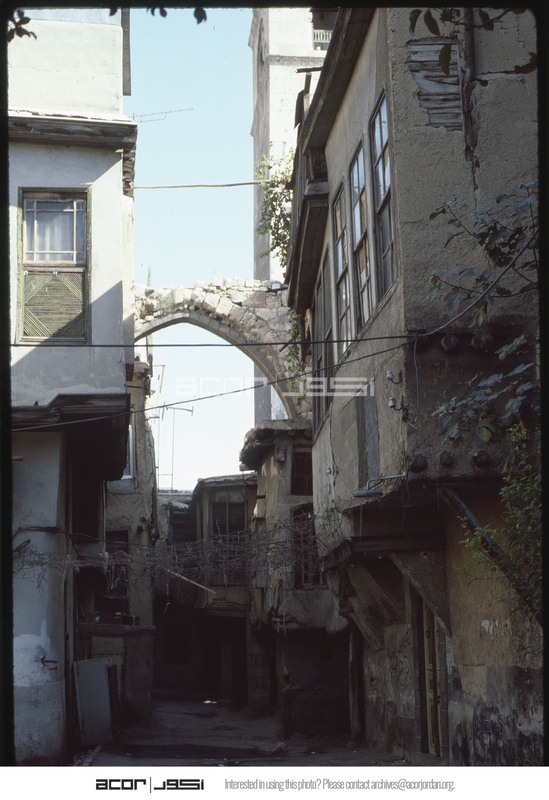 بقايا قوس حجري بين مباني دمشق القديمة