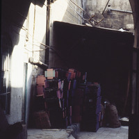صناديق مكدسة في أحد أزقة دمشق