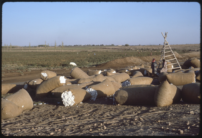 قطن محصود في أكياس في منطقة قلعة الرحبة