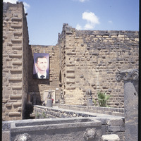 الواجهة الخارجية للقلعة عليها ملصق بشار الأسد