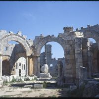 صورة لعمود القديس سمعان وتظهر الأقواس في الهيكل المثمن