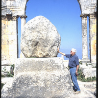 رجل يلمس عمود القديس سمعان