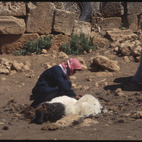 أهالي القرية يجزرون الأغنام بين البقايا الأثرية في رويحة