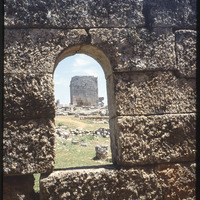 منظر لأنقاض موقع سرجيلا الأثري من خلال نافذة